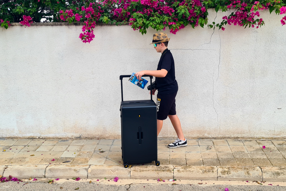 Wie beim Voyageur sorgen auch hier die 360°-Spinnerrollen für geräuschloses Gleiten, selbst durch enge Flugzeuggänge. Dank des vierstufig verstellbaren Griffs kann ich ihn perfekt an meine Körpergröße anpassen. Was man besonders am Flughafen in Palma zu schätzen lernt, wo man ewig vom Gate bis zum Ausgang laufen muss.
